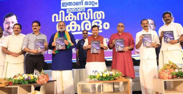 केरल के आगामी विधानसभा चुनाव के लिए भारतीय जनता पार्टी (भाजपा) ने मंगलवार को अपन घोषणापत्र जारी किया। इस दौरान पार्टी के राष्ट्रीय अध्यक्ष नितिन नवीन भी मौजूद रहे। पार्टी ने कई एलान किए हैं।