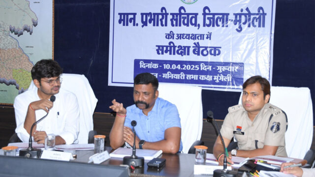 मुंगेली जिले के प्रभारी सचिव डॉ. एस. भारतीदासन ने आज जिला कलेक्टोरेट सभाकक्ष में जिले में संचालित विभिन्न विकास कार्यो और कार्यक्रमों की समीक्षा की। इस दौरान उन्होंने शासन की योजनाओं व कार्यक्रमों की आम जनता तक बेहतर पहुंच सुनिश्चित करने के निर्देश दिए। उन्होंने जिले में कुपोषण की स्थिति की जानकारी ली और गंभीर रूप से कुपोषित बच्चों को चिन्हित कर उन्हें पोषण प्रदान करने हेतु विशेष अभियान चलाने को कहा। उन्होंने नामांतरण, बटांकन, सीमांकन, जाति, आय और निवास प्रमाणपत्रों के कार्यों का समयबद्ध निपटारा करने के निर्देश दिए। बैठक में कलेक्टर राहुल देव सहित विभिन्न विभागों के अधिकारी उपस्थित थे।