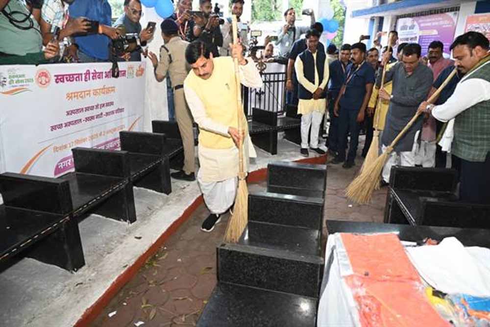 मुख्यमंत्री डॉ. मोहन यादव ने सेवा पखवाड़ा अंतर्गत स्वच्छता अभियान के तहत गुरूवार को रानी दुर्गावती चिकित्सालय जबलपुर में साफ-सफाई के लिए झाडू लगाकर श्रमदान किया। मुख्यमंत्री डॉ. यादव ने चिकित्सालय के स्टाफ एवं शासकीय कर्मचारियों से आग्रह किया कि वे कार्यालयीन समय के पूर्व रोस्टरवार स्वच्छता के लिए श्रमदान करें। मुख्यमंत्री डॉ. यादव ने जिला चिकित्सालय सहित सभी सामुदायिक स्वास्थ्य केन्द्रों एवं स्वास्थ्य संस्थाओं में सामाजिक संगठनों, स्वयंसेवी संगठनों से अपील की कि वे सेवा पर्व के दौरान स्वच्छता के लिये श्रमदान करें।